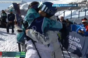 体育资讯02月22日讯 米兰冬奥会自由式滑雪女子U型场地技巧决赛第2轮,中国选手李方慧第二滑91.50分位列第二,仅次于谷爱凌。李方慧完成第二滑后,与场边的谷爱凌拥抱。