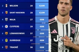1.弗拉霍维奇(尤文图斯),目前身价3500万欧元