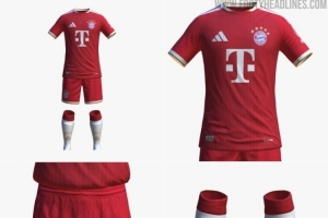 从媒体晒出的图片来看,拜仁下赛季主场球衣以红色为主色调,搭配白色、金色细节,球袜为白色并带有纹路设计,与球衣的条纹相呼应。