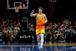 第三节末段,克尼佩尔轰进了自己本赛季的第207个三分球,打破了2022-23赛季的基根·穆雷保持的NBA历史新秀赛季三分命中纪录(206)!