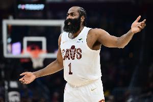 据统计,哈登(36岁198天)单场得到至少30分5篮板5助攻,骑士队史最老。