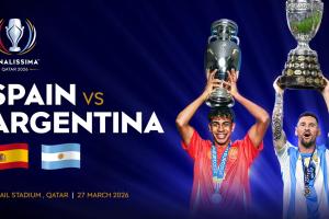 经欧足联与卡塔尔赛事主办方充分磋商后,今日宣布:受该地区当前政治局势影响,原定于3月27日在卡塔尔举办的欧美杯即2024年欧洲杯冠军西班牙队对阵2024年美洲杯冠军阿根廷队的比赛,将无法如期举行。