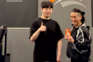 体育资讯3月17日讯 健身教练分享了和HLE打野Kanavi的合影及运动动态。