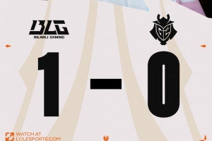 龙魂团BB波比锤飞两个无济于事,Bin安蓓萨大招命中G2后排,一打三直接三杀收尾!BLG拿下火龙魂+大龙拉开经济差!随后的比赛BLG先拆对手两路,Viper艾希团战持续输出,高地团Bin安蓓萨大招锁到Hans Sama塞纳将他秒掉!BLG团灭G2先拿一分!