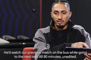 拉菲尼亚:“他不开车,因为他得专心准备训练,所以一直有司机接送他。他无时无刻不在备战比赛。去下一场比赛的巴士上,他会把上一场的完整录像再看一遍——全90分钟,没剪辑的原版,他就这么全程看完。