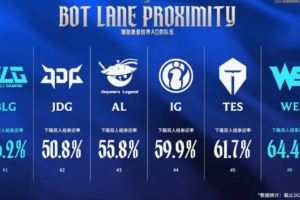 体育资讯4月9日讯 在今天BLG对阵WE的比赛开始前,官方给出了下路亲近率倒数排行榜,其中BLG位列第一,这意味着ON的游走频率非常之高