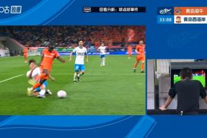 体育资讯04月17日讯 中超第6轮,青岛海牛vs青岛西海岸。比赛第31分钟,叶博亚高速前插进入西海岸禁区,王庚睿倒地放铲,主裁判第一时间判罚门球。