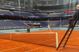 体育资讯04月23日讯 马德里大师赛进行期间,一场别开生面的网球友谊赛在伯纳乌展开,对阵双方是辛纳+贝林厄姆vs库尔图瓦+纳达尔,担任主裁判的是皇马主席弗洛伦蒂诺。
