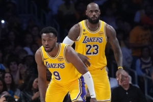 据统计,当勒布朗与布朗尼同时在场时,湖人在本轮系列赛中每百回合净胜火箭29.6分,具体如下: