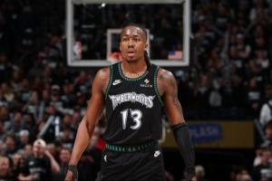 此役,森林狼后卫阿约·道苏姆表现神勇,他替补登场42分钟17投13中,三分5中5、罚球12中12,狂轰43分4篮板1助攻1盖帽,大幅刷新个人生涯得分纪录(常规赛最高35分,季后赛25分)。