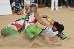 体育资讯04月27日讯 4月27日,在海南三亚举行的第六届亚洲沙滩运动会沙滩卡巴迪男子决赛中,伊朗队44比31战胜印度队,获得冠军。印度队获得亚军,斯里兰卡队和巴基斯坦队获得并列季军。