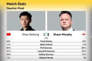 赵心童vs墨菲第一阶段数据: