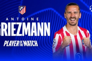 击中门框!官方:35岁格列兹曼当选马竞vs阿森纳全场最佳