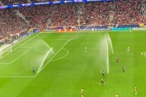 记者Isaan Khan社媒晒出上半场结束后的浇水视频,并指出马竞只在阿森纳的半场浇水。
