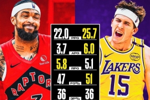 英格拉姆:场均22.0分3.7助攻5.8篮板0.8抢断0.8盖帽,投篮命中率47%,三分命中率36%,真实命中率57%。